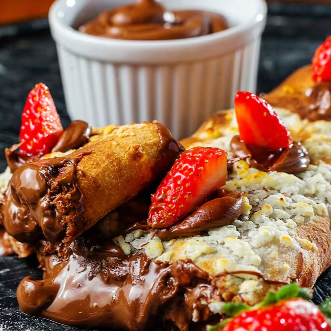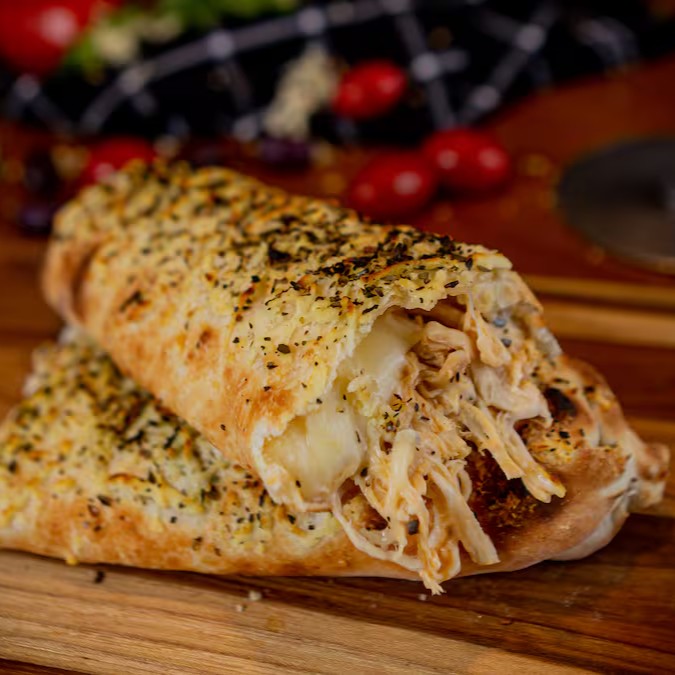 Massa de pizza crocante enrolada em formato bastão, deliciosamente recheada e gratinada com parmesão.