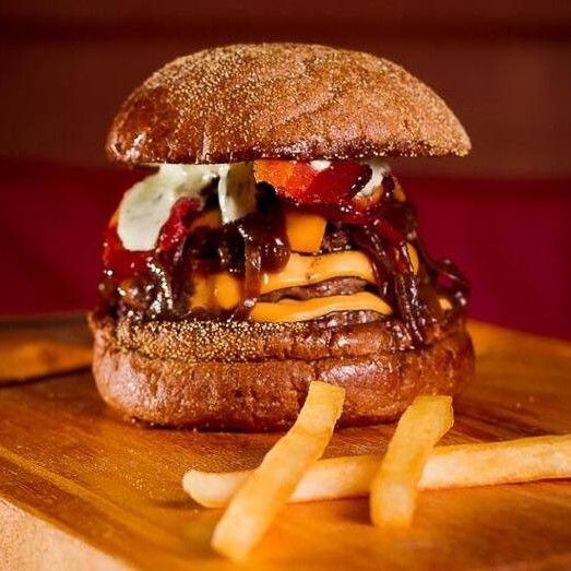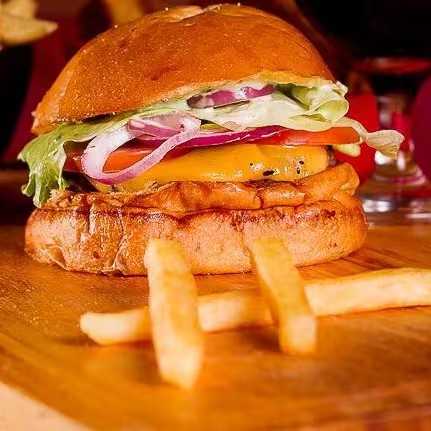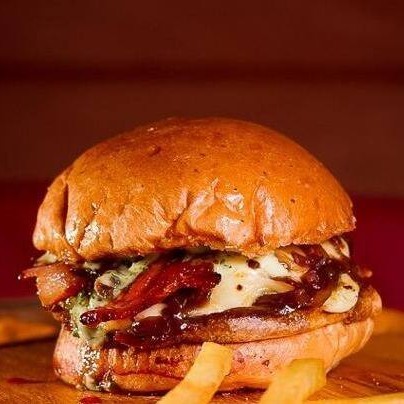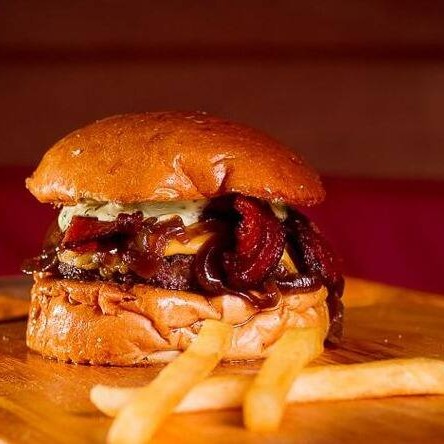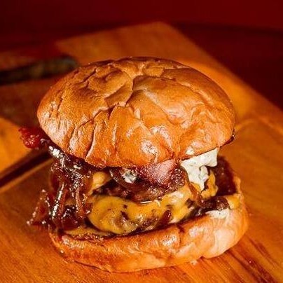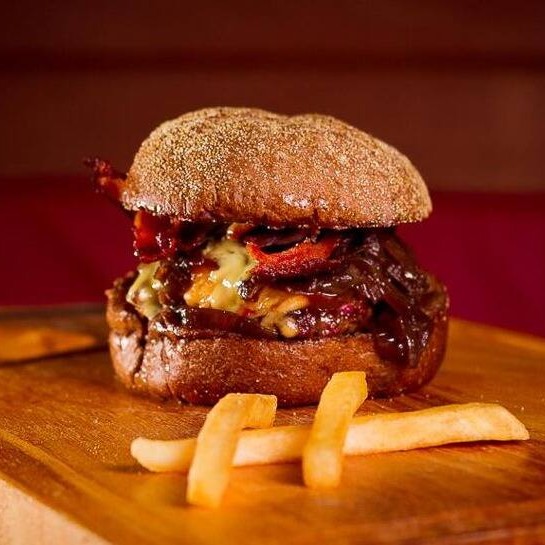 Burguer bovino de aproximadamente 150g, blend da casa, queijo cheddar, bacon, molho da casa, cebola caramelizada, pão australiano.