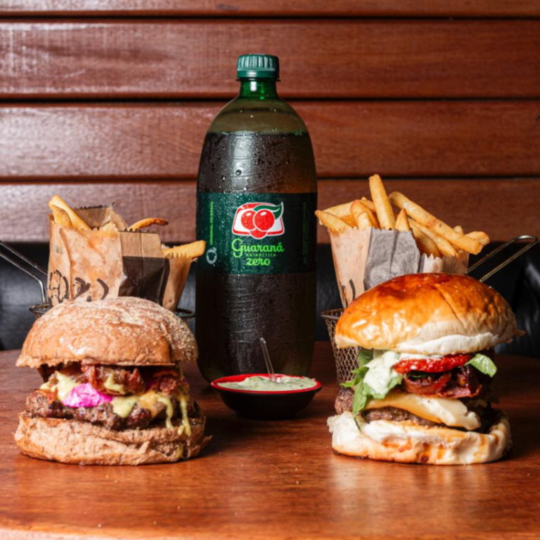 Hambúrgueres artesanais grelhados, suculentos e cheios de sabor: * Hills Classic Prime * Hills Burguer Acompanhados de 2 porções de batata frita crocantes e 1 refrigerante de 1L.