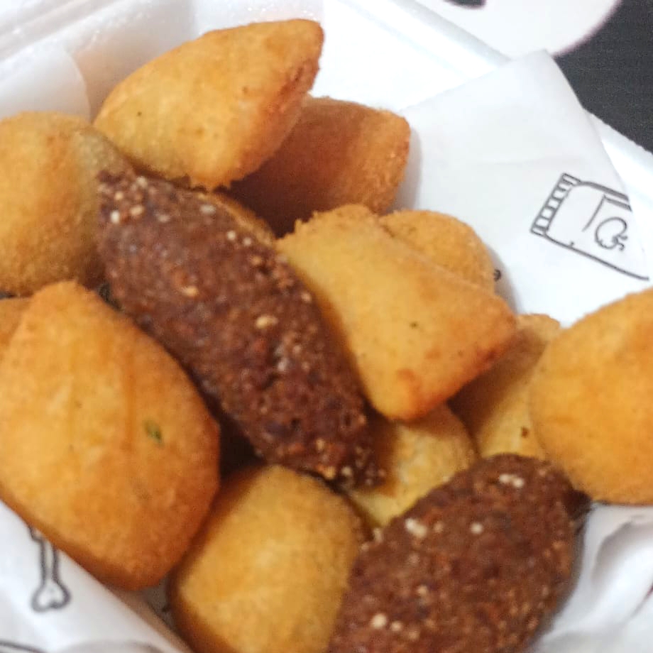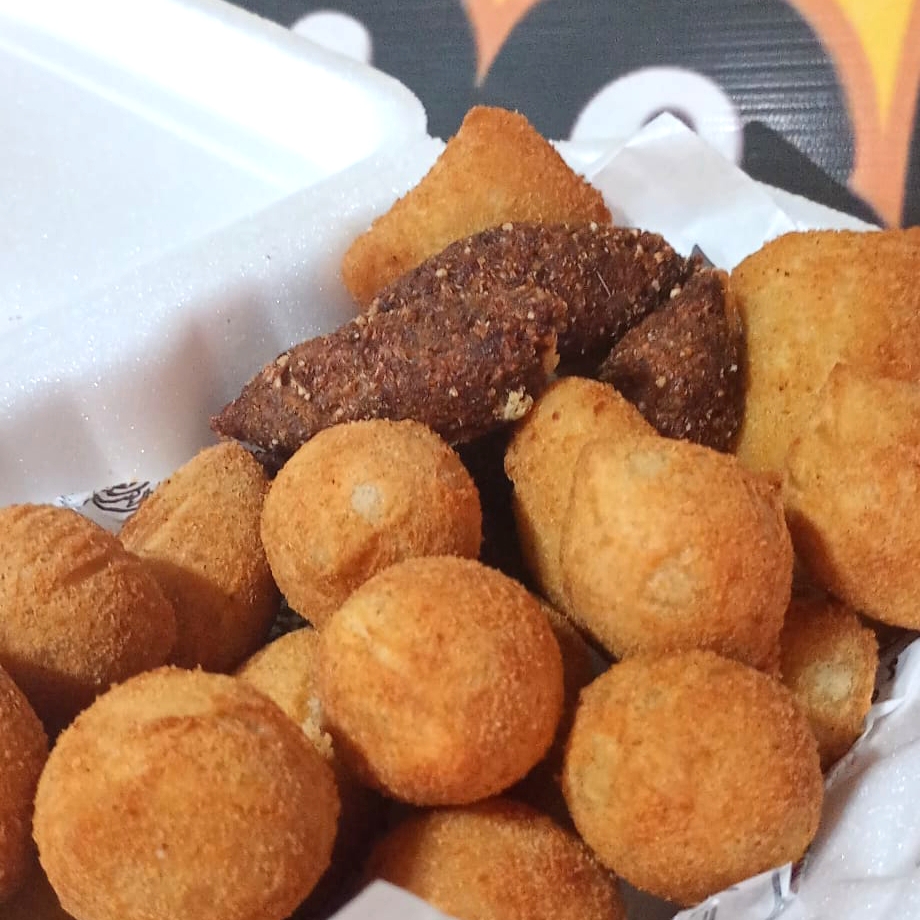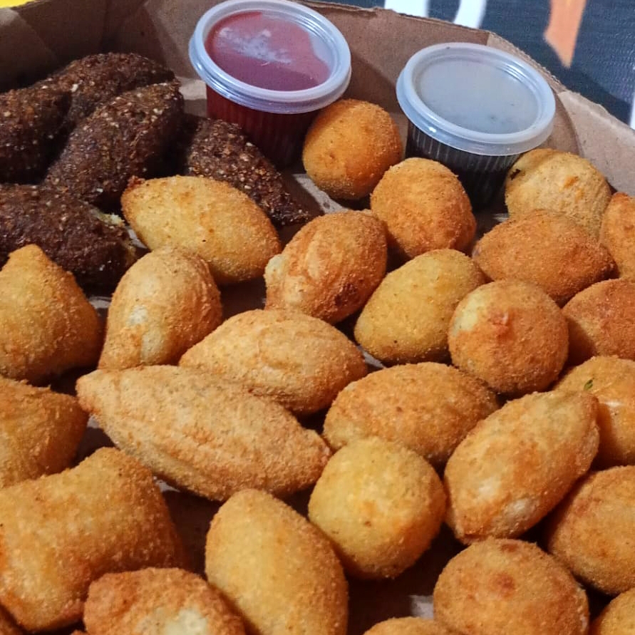 1 x bacon, 1x calabresa ,15 salgados sotidos,batata M