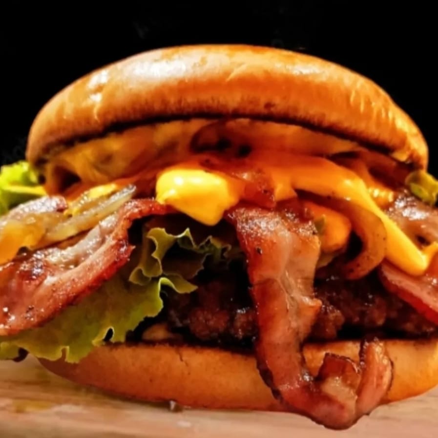 Blend de 160g, salada de alface e picles, cebola caramelizada, bacon, molho cheddar