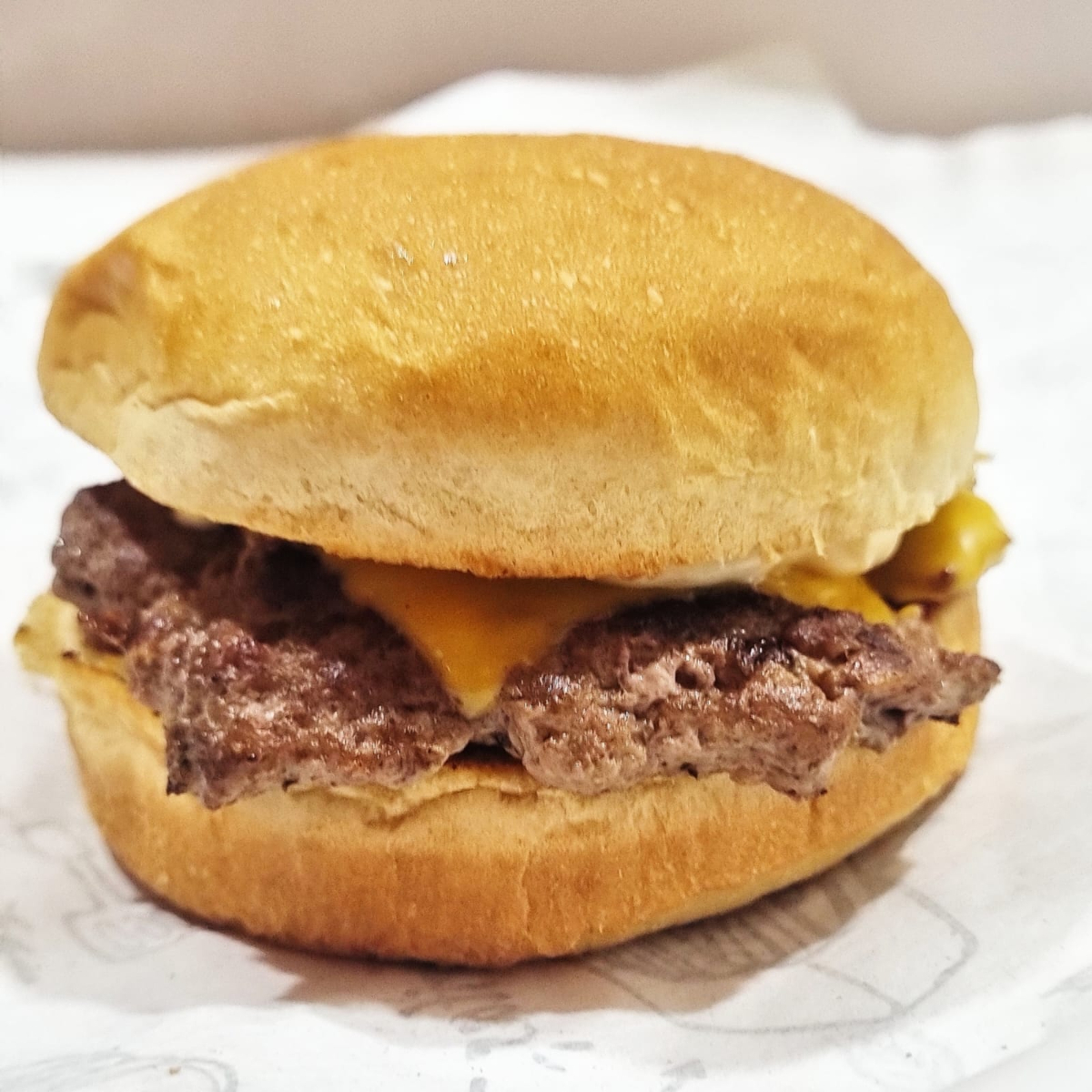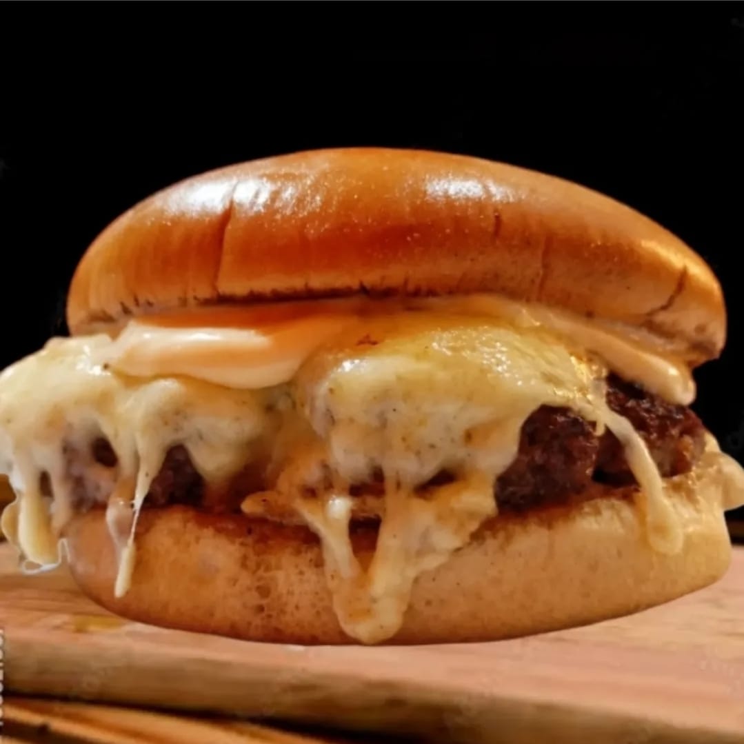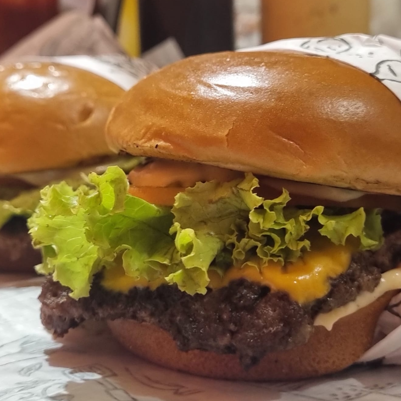 Blend de carne bovina, queijo chedder, molho da casa BRINDE: Cards bobbie goods.