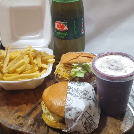 2 Burguers Ação, 1 Batata Grande, 1 Refri de 1 Litro e 1 açai na garrafa