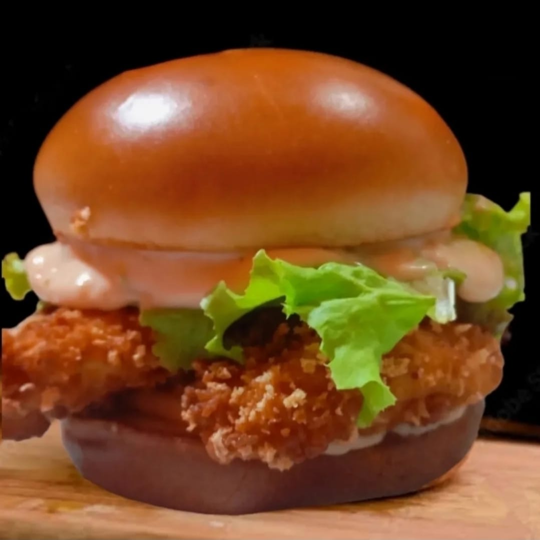 2 tiras de frango frito, salada de alface e picles, cebola caramelizadamolho
