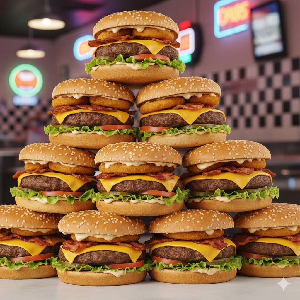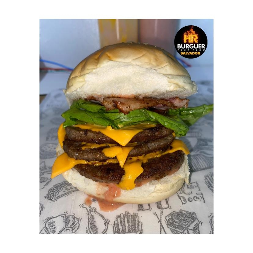 Pão, quatro carnes 100% bovinas, queijo, bacon, molho especial, cheddar