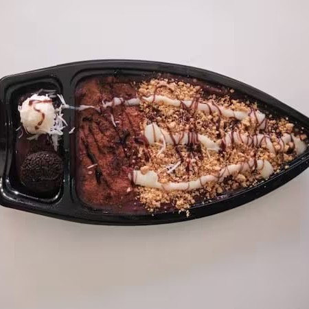 Delicie-se com a nossa Barca de Açaí de 500ml, um prato que exala frescor e sabor. Desfrute de um açaí intensamente cremoso, acompanhado por cinco adições generosas já inclusas, meticulosamente dispostas em fileira sobre a barca. Para completar, uma calda irresistível desliza graciosa, adicionando um toque final de doçura. Uma sensação verdadeiramente tropical que vai te transportar para o coração da Amazônia!