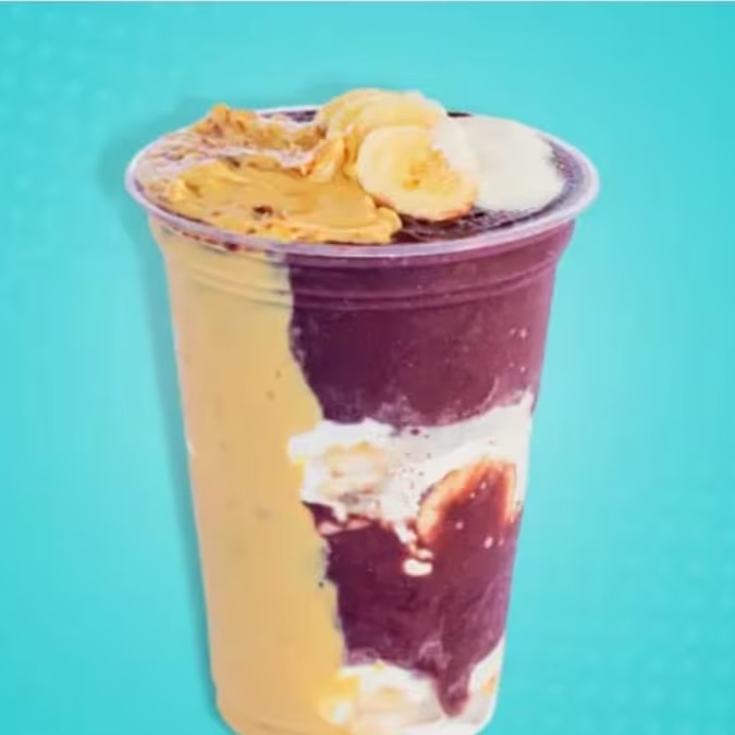 Açaí 500ml com creme de amendoim, banana e Whey Protein.