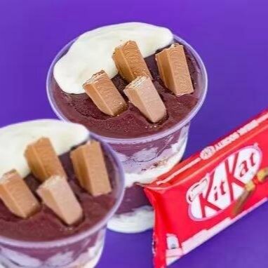 Açaí da melhor qualidade,mousse de leite em pó, acompanhado de Kit Kat. Especial para quem gosta de chocolate.