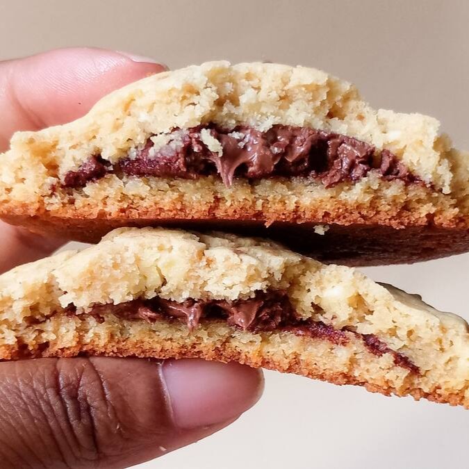 A combinação perfeita do momento! Nosso cookie traz uma leve massa amanteigada de Ninho com o puro recheio da luxuosa Nutella. Uma viagem sensorial para os amantes de creme de avelã!