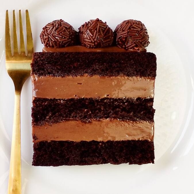 Uma obra prima de fatia! Camadas de bolo de chocolate ultra macias e molhadinhas, acompanhadas com generosas camadas de recheio cremoso de brigadeiro de chocolate nobre ao leite, que juntos, derretem na boca a cada garfada. Na decoração, nossos já conhecidos e famosos brigadeiros ao leite. Verdadeiro chocolatudo!