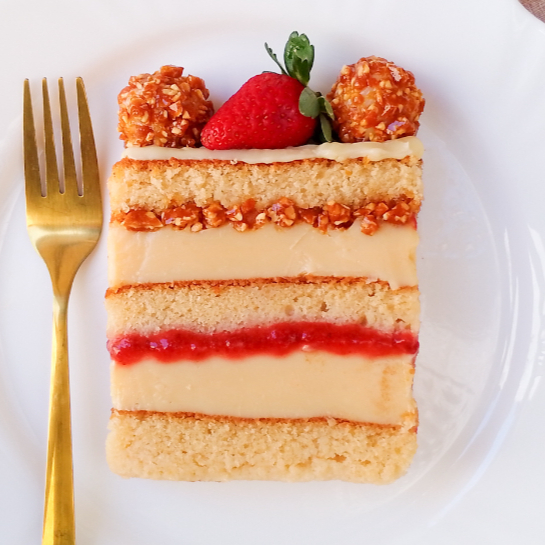 A perfeita harmonia entre texturas e sabor! Camadas de bolo amanteigado de baunilha, intercaladas com nosso brigadeiro cremoso truffle branco, um toque incrível de acidez da nossa geleia artesanal de morangos e o nosso praliné crocante de amendoim. A verdadeira celebração de doçura e prazer! ___Tags___ o melhor de Salvador, Ib Confeitaria, doce gostoso , excelente , qualidade , elogiado , cinco estrelas , entrega rápida , entrega grátis , promoção exclusiva , cupom , desconto , torta , tortinha de limão , bolo , sequilho , pastel doce , bolo no pote , fatia de torta , brigadeiro , trufa , copo da felicidade , brownie , cookie , pudim , biscoito , mousse , Nutella , cone trufado , sorvete , coxinha de morango , morango do amor , macarons , pipoca doce , pipoca nobre , sobremesa , Ninho , chocolate , chocolate branco , meio amargo , ao leite , café , leite , pistache , nozes , amendoim , coco , goiabada , doce de leite , Ovomaltine , pão de mel, red velvet , ameixa , olho de sogra