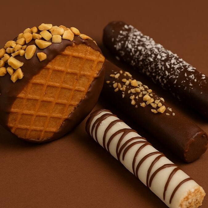 Charutos recheados com sabores intensos de Ninho & Chocolate, Coco & Chocolate ao Leite e Ferrero Rocher, finalizados com cobertura de chocolate e toppings especiais, acompanhados do nosso biscoito sanduíche estilo Ferrero, crocante por fora e absurdamente cremoso por dentro.