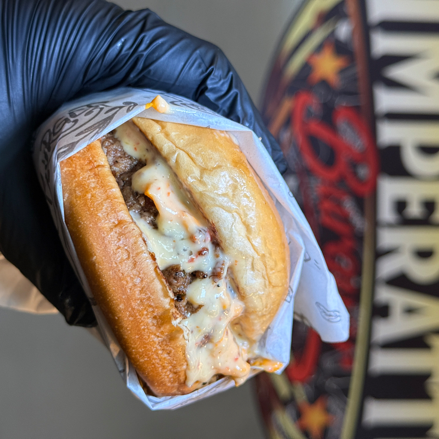 Pão brioche, smash 80g, queijo cheddar e molho especial da casa.