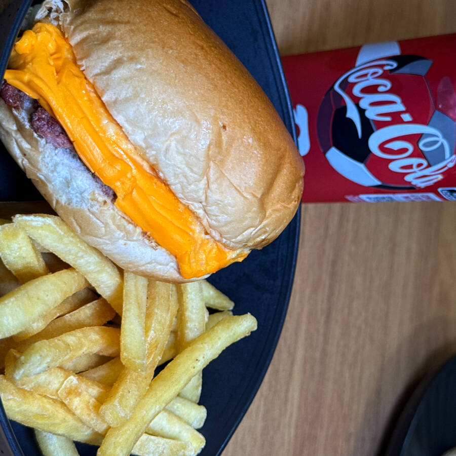 Qualquer Burger 150g + batata média + refrigerante lata.