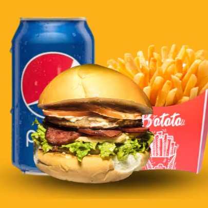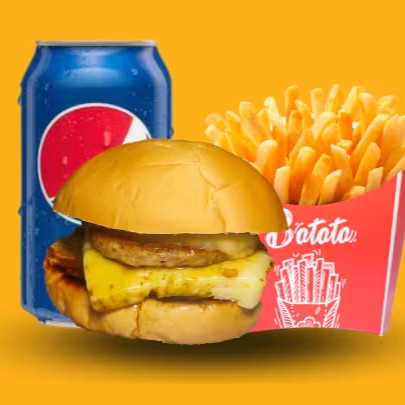 Acompanha um hambúrguer "Sem miséria", um refrigerante 350ml e uma batata frita simples.