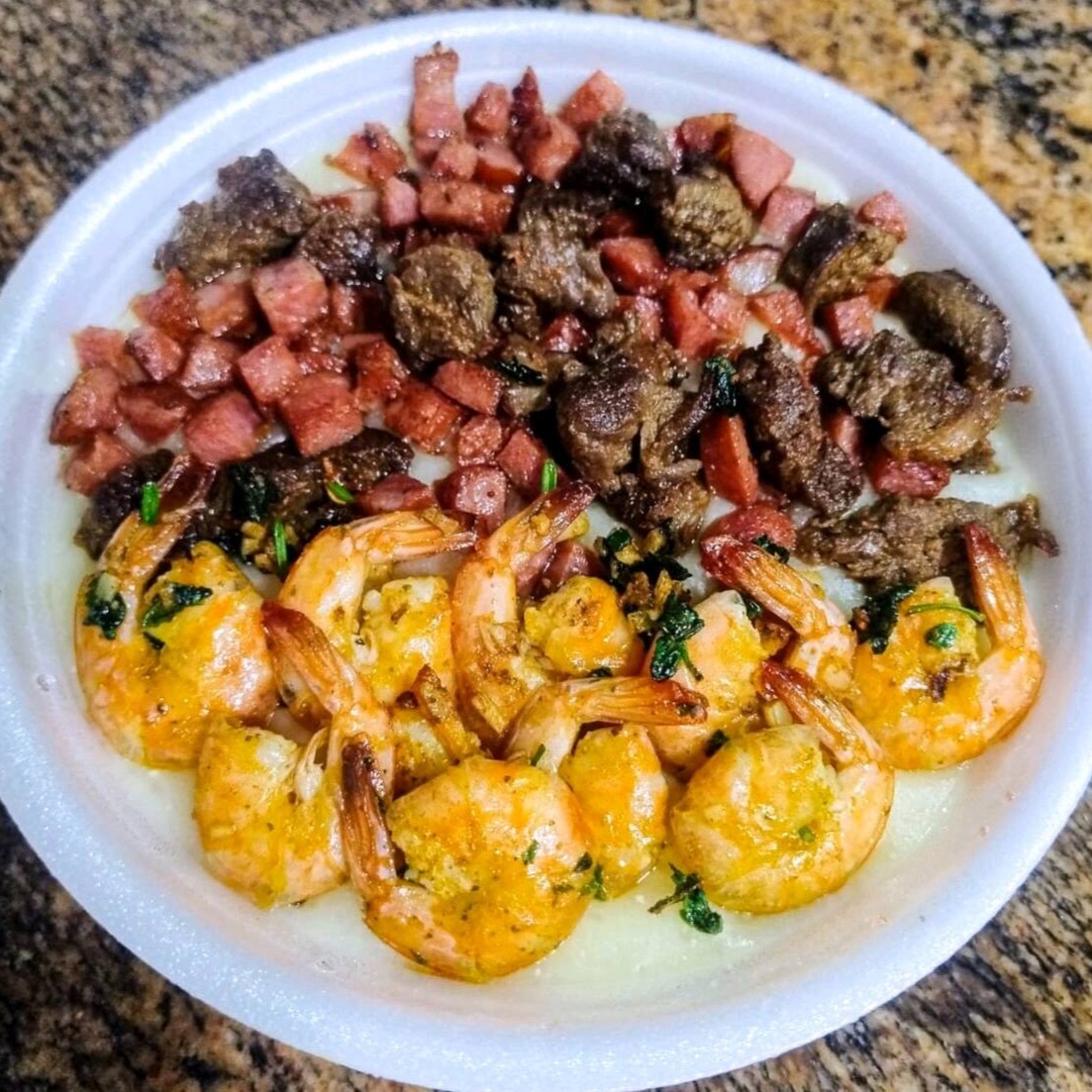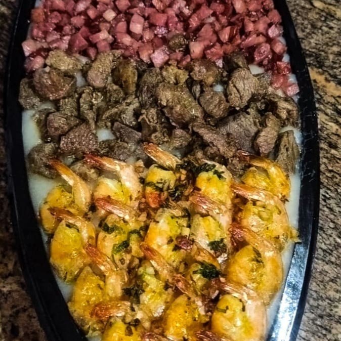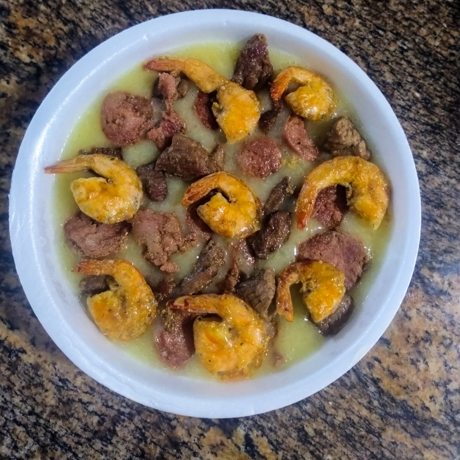 Pirão Misto G Com Carne, Calabresa E Camarão