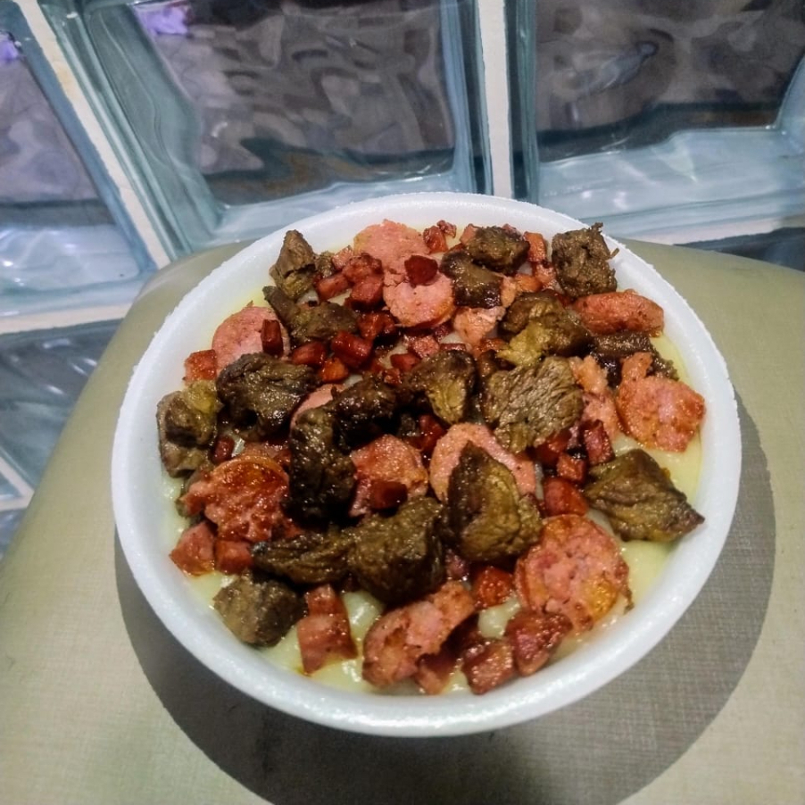 Pirão misto com carne, calabresa e toscana