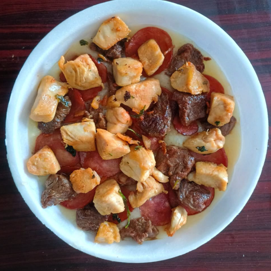 Pirão Misto G Com Carne, Calabresa E Frango