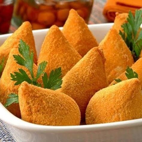 2 coxinha de frango com queijo tamanho P 100 gramas