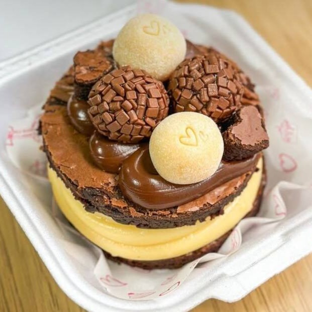 Brownie macio e molhadinho, com casquinha crocante, recheado com creme de Ninho super cremoso e finalizado com chocolate derretido. Uma combinação irresistível para quem ama chocolate!