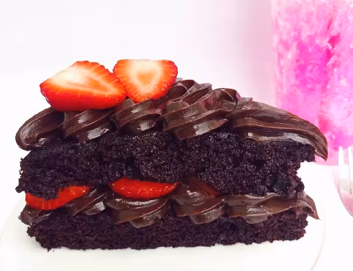 Bolo chocolate com recheio de chocolate e morangos in nature
