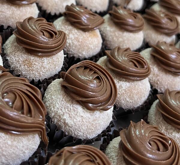 3 Unidades de mini bolos , 1 red velvet com cobertura de ninho com geleia artesanal de morango , 1 oreo com recheio branco e nutela , 1 chocolate com recheio chocolate e Crocante de ovomaltine .