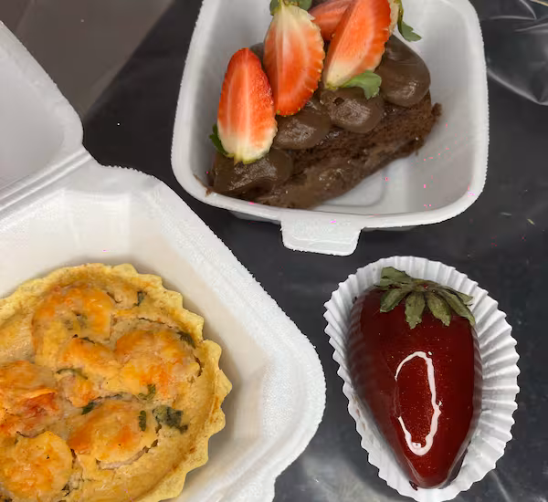 1 bolo afoga de ninho com morango;1 bolo afogado de ninho com nutela e 1 fatia de casadinho