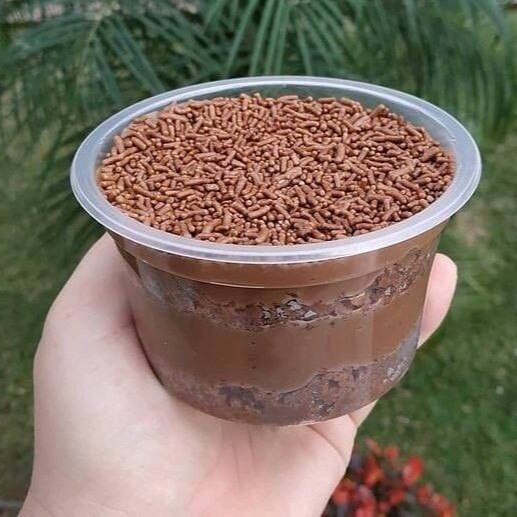 Nosso bolo de pote bem chocolatudo para os apaixonados por chocolate, massa de chocolate com recheio de brigadeiro 50% finalizados com bastante granulado.
