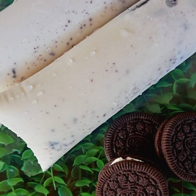 Geladinho gourmet com base cremosa de Ninho e pedaços de biscoito Oreo.