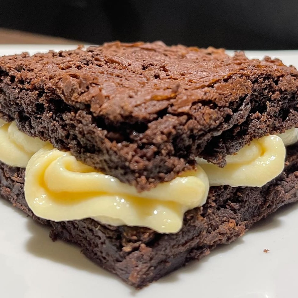 Duas camadas de brownie bem chocolatudo abraçando um recheio cremoso de Ninho. Macio por dentro, levemente crocante por fora — doce na medida e impossível de comer um só. Dica: experimente com calda extra de chocolate!
