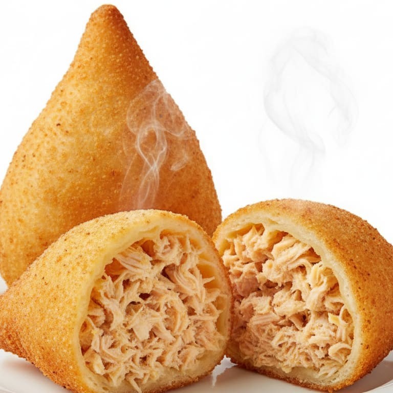 Recheio generoso e delicioso com frango desfiado, calabresa saborosa e Catupiry cremoso, envoltos em uma massa crocante e dourada. Sabor irresistível em cada mordida!