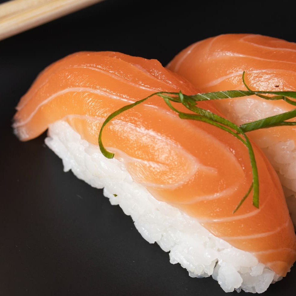 Salmão fresco com arroz gohan envoltos na alga nori. (Acompanha: hashi, shoyu e teriaki)