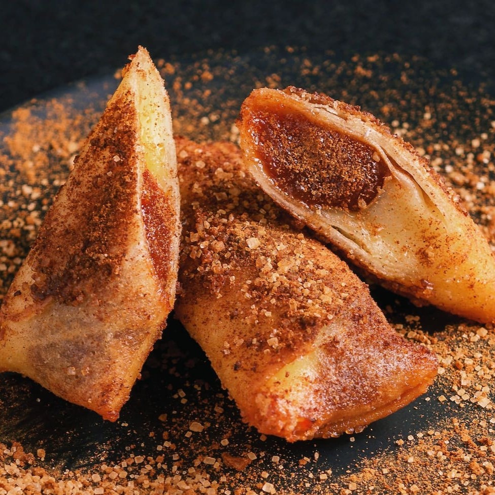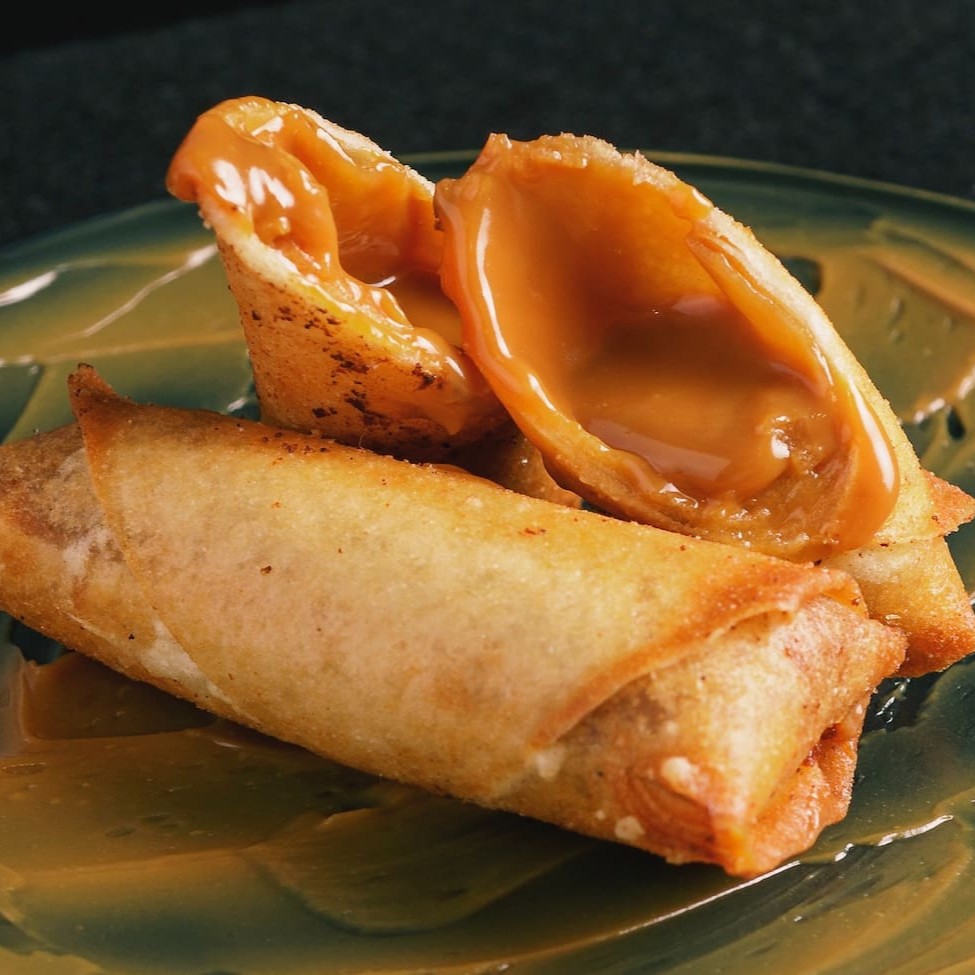 Massa de Harumaki envolta na banana da terra com doce de leite.