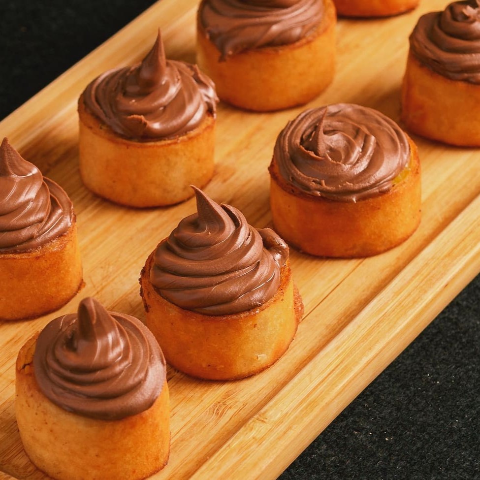 Massa de harumaki envolta na banana da terra coberta com Nutella.
