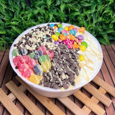 Açaí cremoso e geladinho para você aproveitar. Com 2 caldas + 1 fruta + 3 complemento
