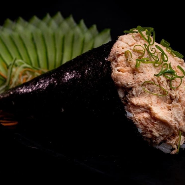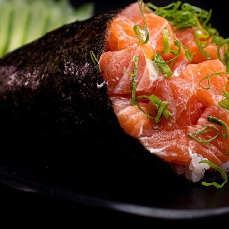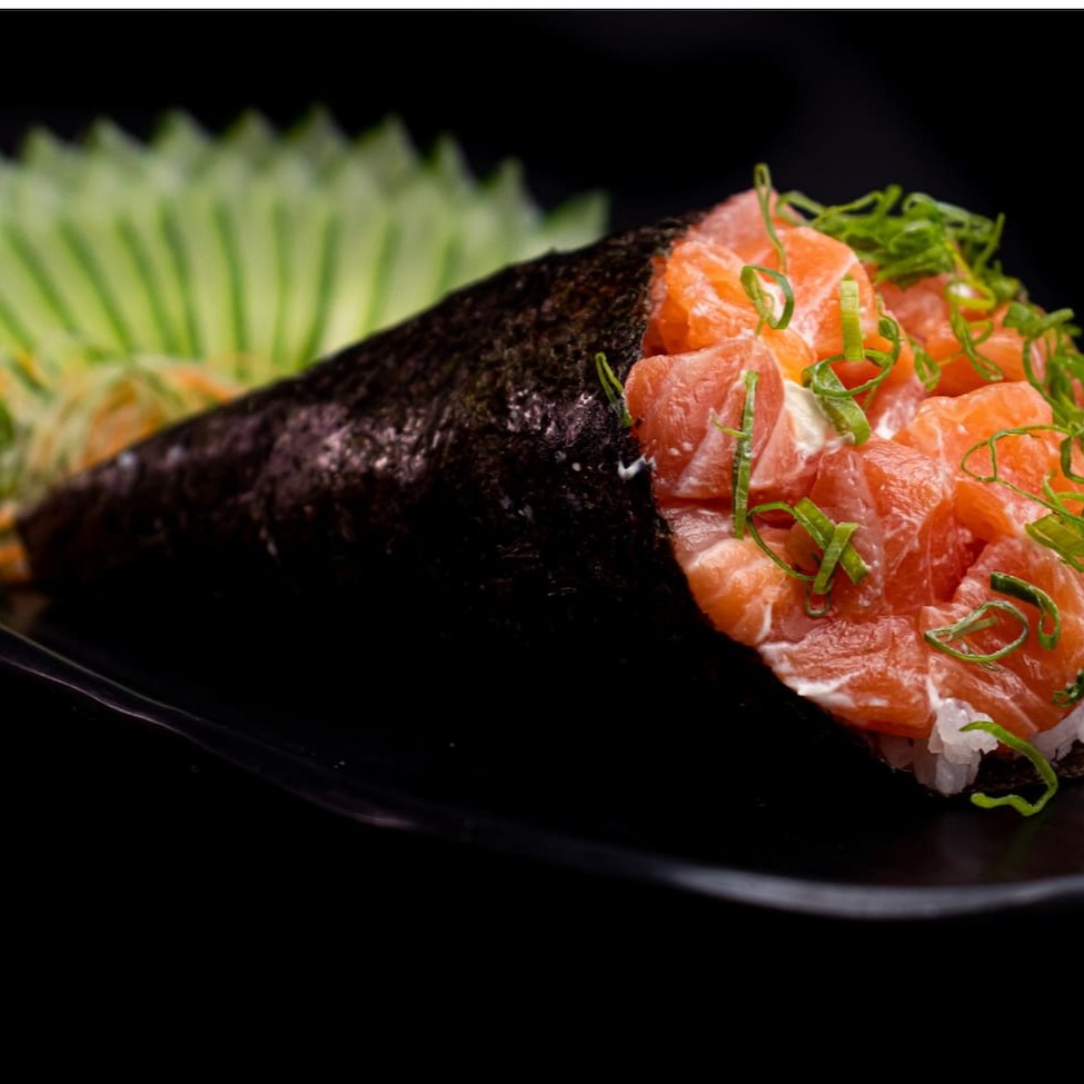 Temaki com um irresistível Patê de Salmão grelhado com Cream Cheese e Cebolinha. Incluso: ( 01 Hashi e 01 Sachê de Shoyu)