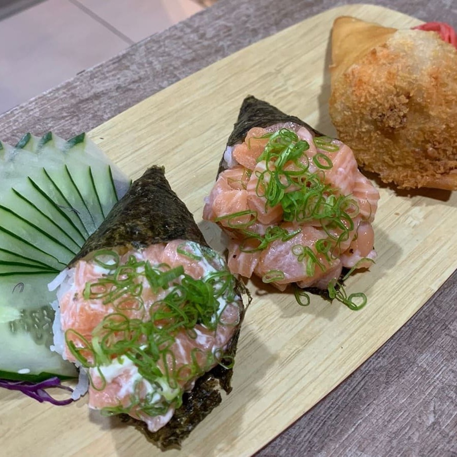 1 Mini Temaki Filadelfia (100g); 1 Mini Temaki Salmão, Camarão e Cram Cheese (100g); 1 Mini Temaki Hot Salmão Grelhado e Cream Cheese (100g) - (com arroz)