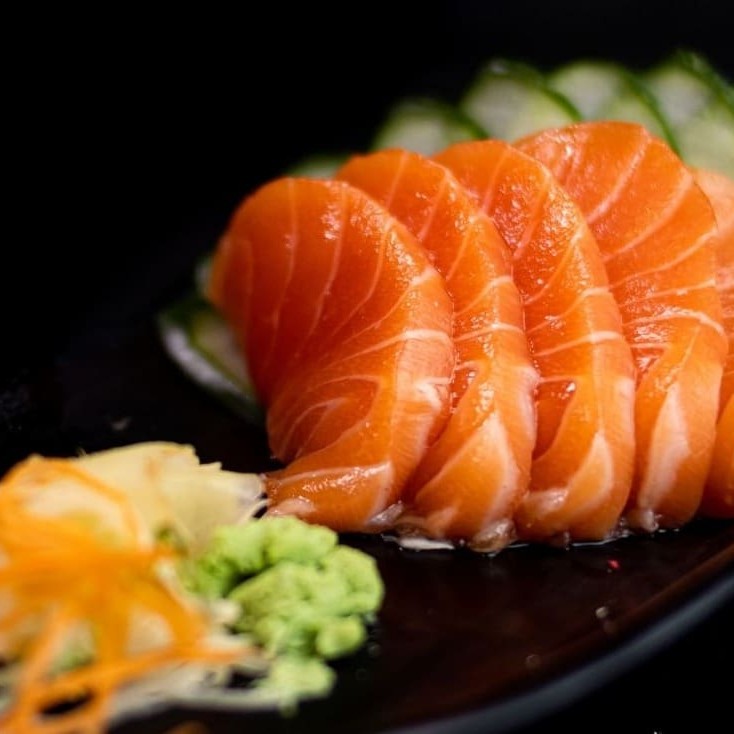 05 Lâminas de Salmão Fresco! Incluso: ( 01 Hashi e 02 Sachê Shoyu)