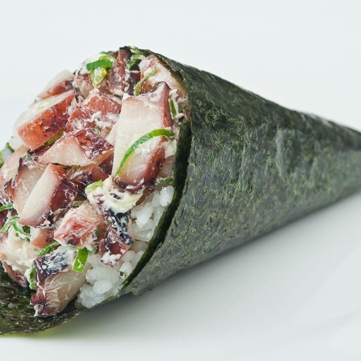 Que venha o Polvo! Temaki de Polvo pré cozido com Cream cheese e Cebolinha! (com arroz)