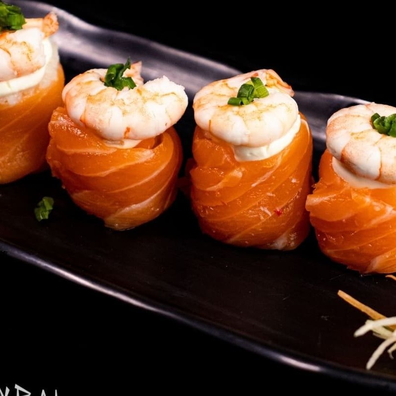 635 - Temaki Salmão Cru, Camarão E Cream Cheese