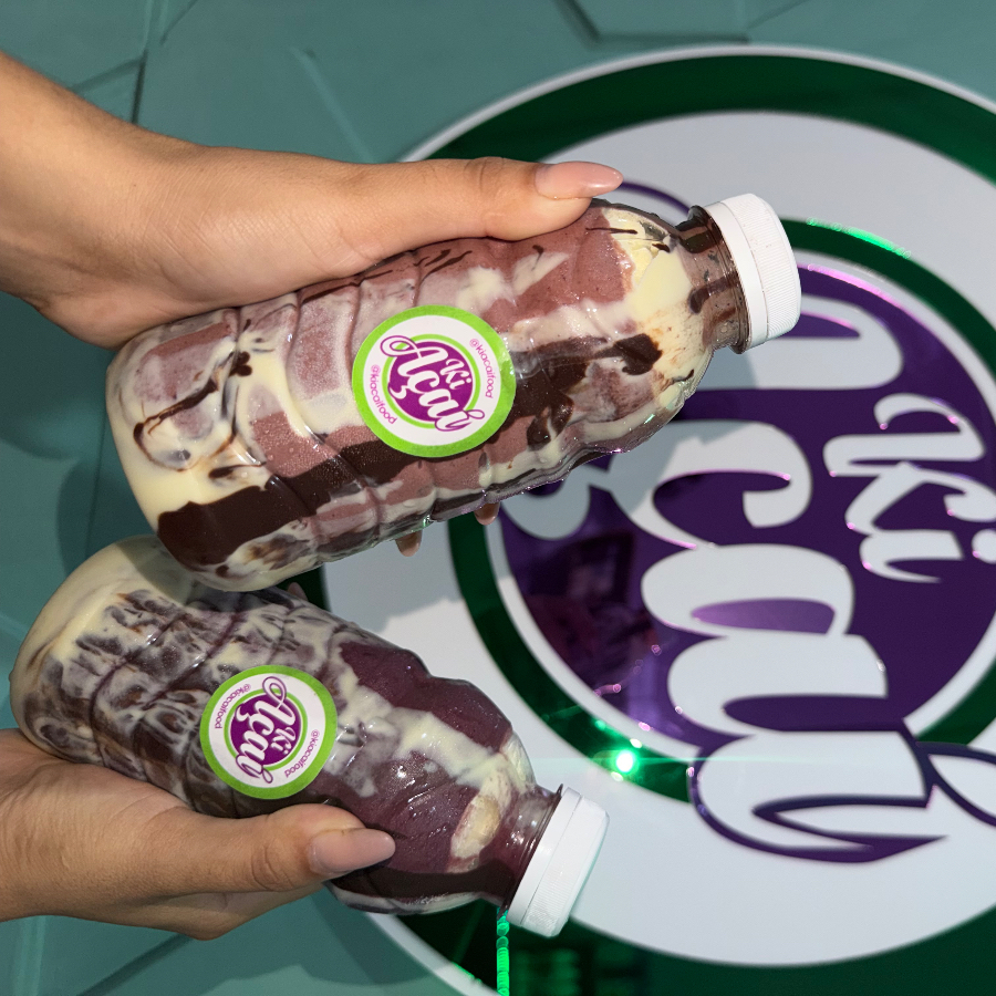 Açaí batido na garrafa. Escolha o seu sabor preferido!