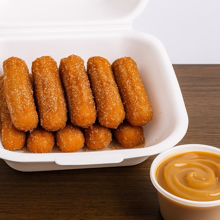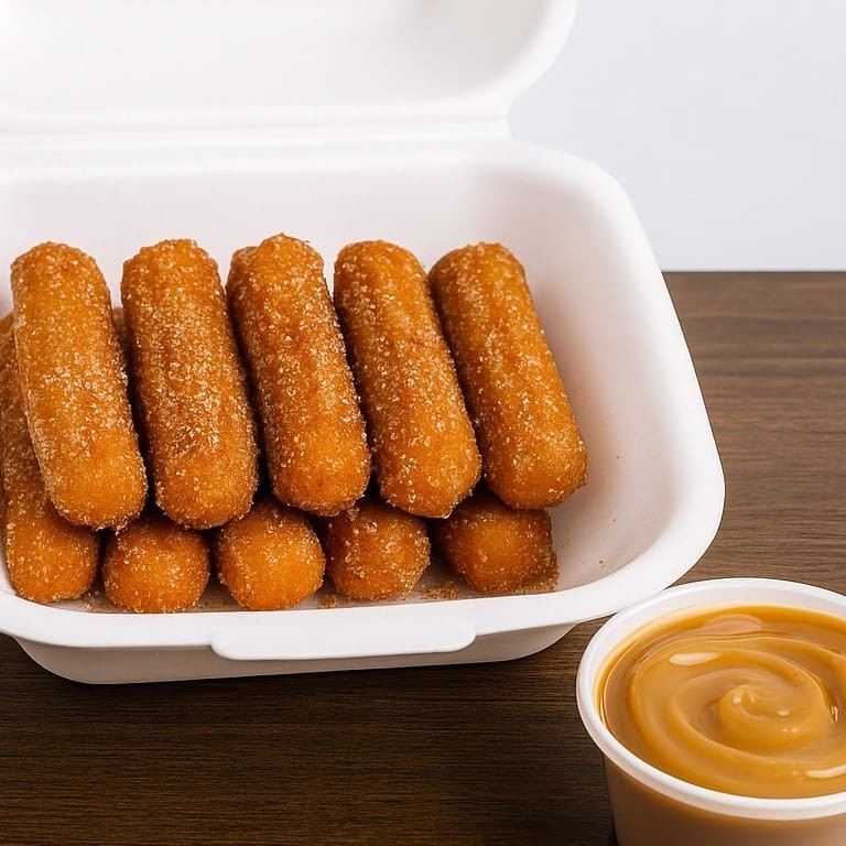 80 Mini Churros + Um pote de Doce de Leite + um Refrigerante de 1 Litro