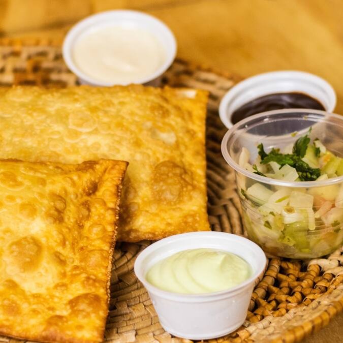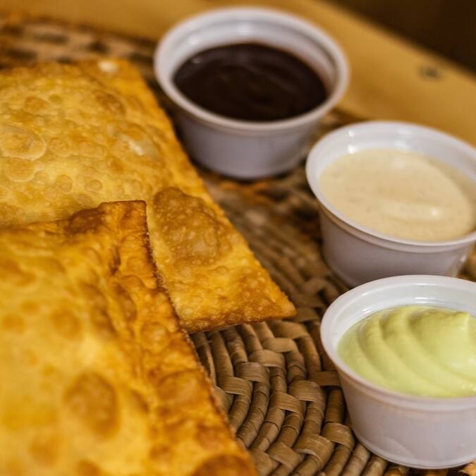 Compre 1, leve 2! Nosso combo de 2 pastéis mais 1 molho incluso é perfeito para compartilhar.