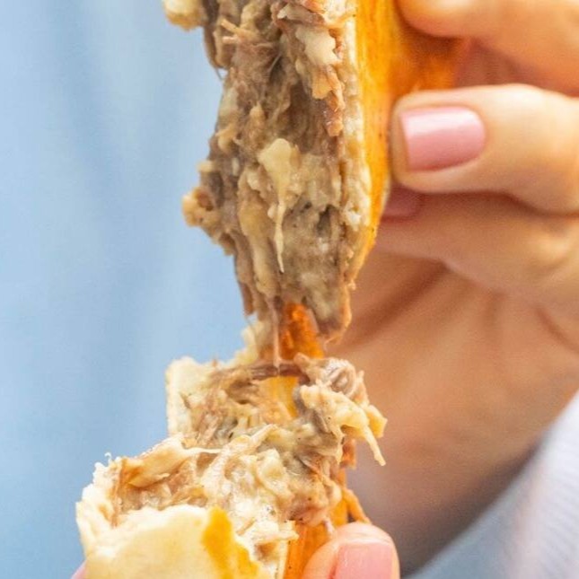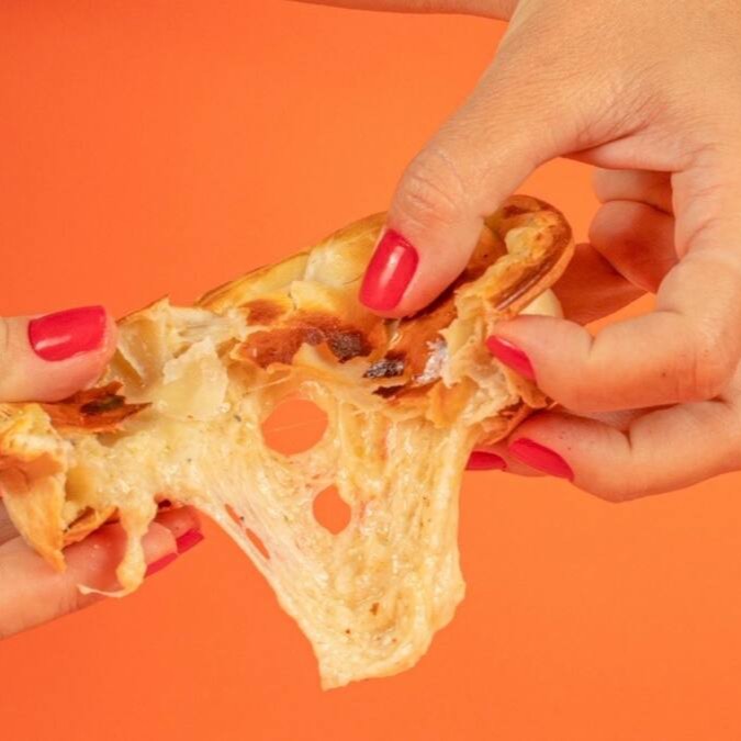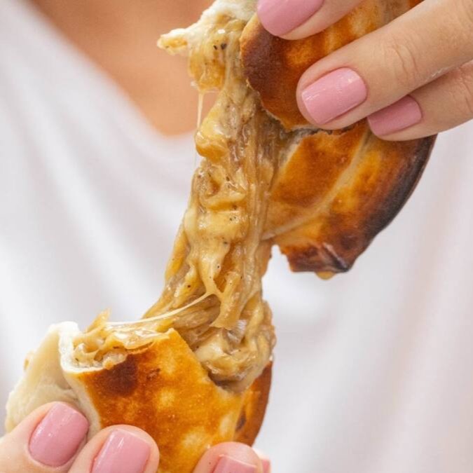 Presunto e queijo super cremosos com uma pitada de orégano. Não tem cebola!