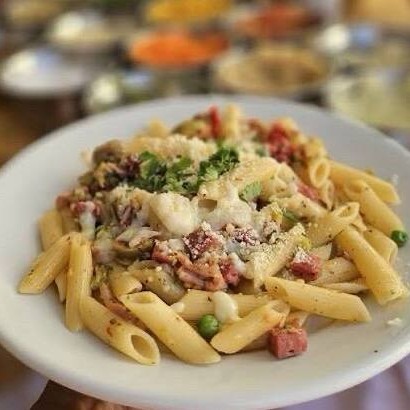 Pão, carne, queijo, presunto, ovo, calabresa, bacon, frango, milho e salada. Acompanha maionese temperada e ketchup