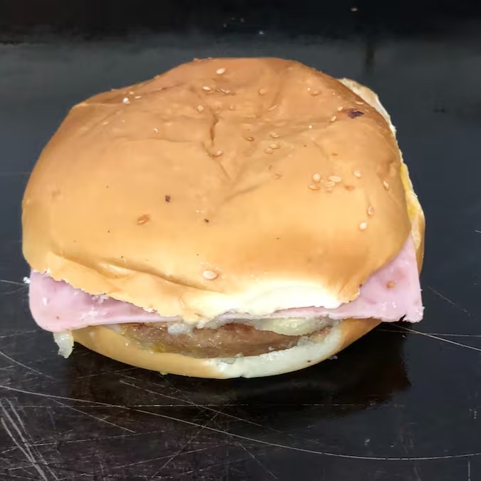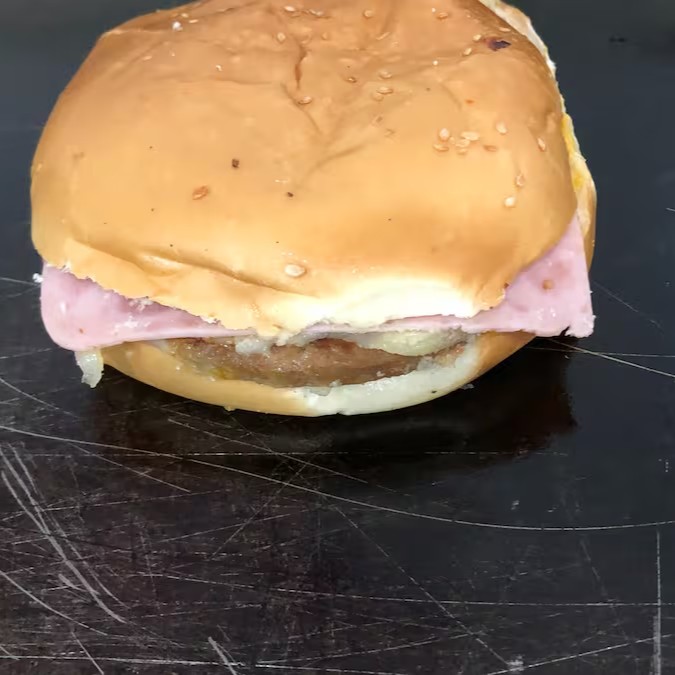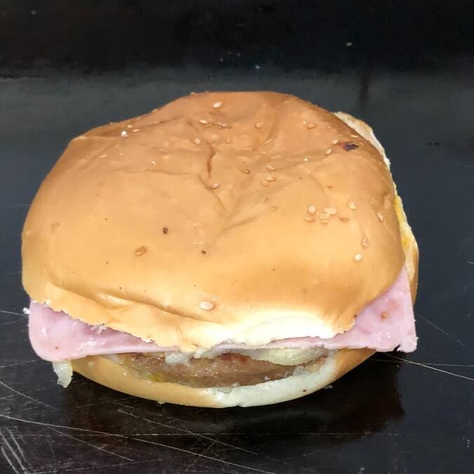 Pão com gergelim, 2 carnes bovinas(112 gr), ovo, queijo, presunto, tomate e molhos.