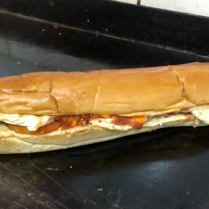 Pão de vara(35cm), 3 carnes bovina(168gr), 3 ovos, 3 queijos, 3 presuntos, bacon(50gr), calabresa(50gr), tomate e molhos.