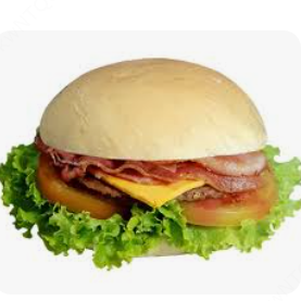 Pão com gergelim, carne bovina(56gr), bacon(50gr), ovo, queijo, tomate e molhos.