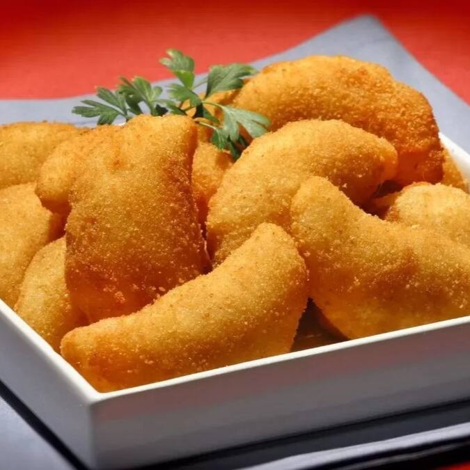 Salgados fritos, sabor camarão fresco, tamanho em torno de 25g