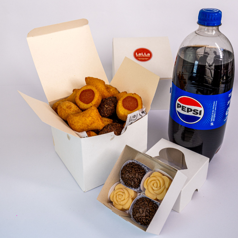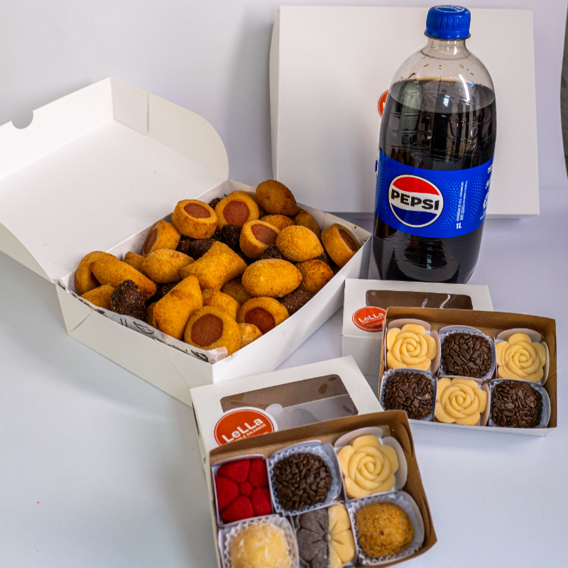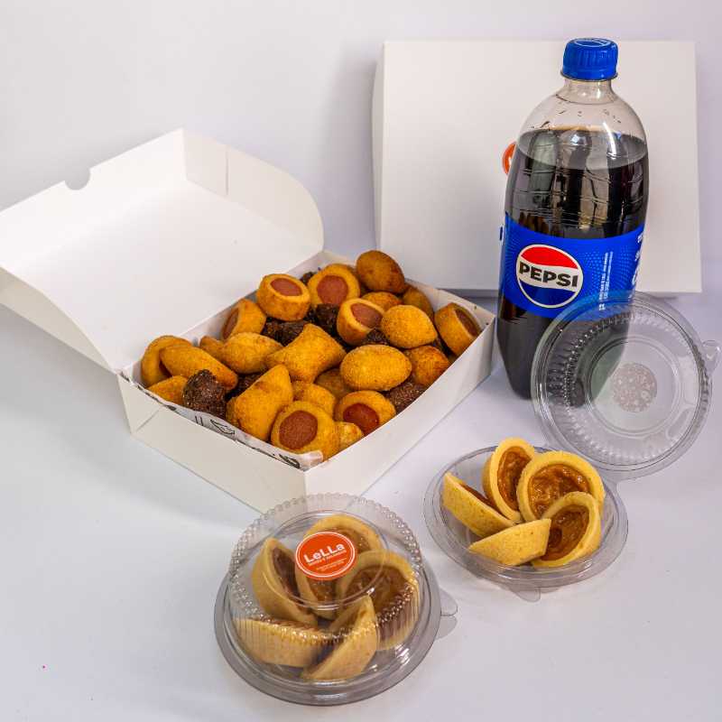 Kit Festa Pra 4: 40 Salgadinhos Fritos + 10 Empadinhas Doce + Refri 1l